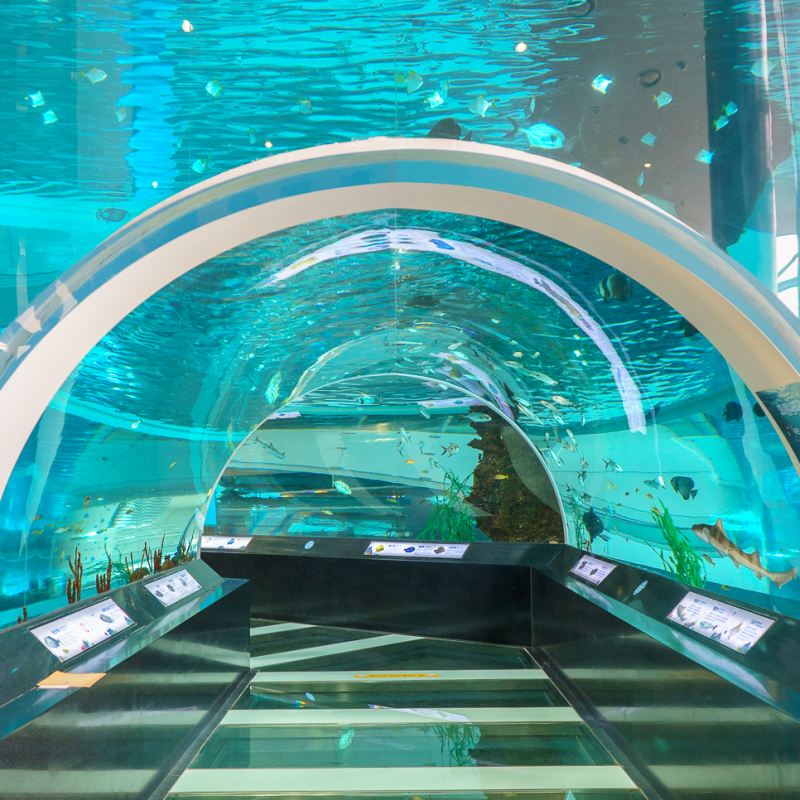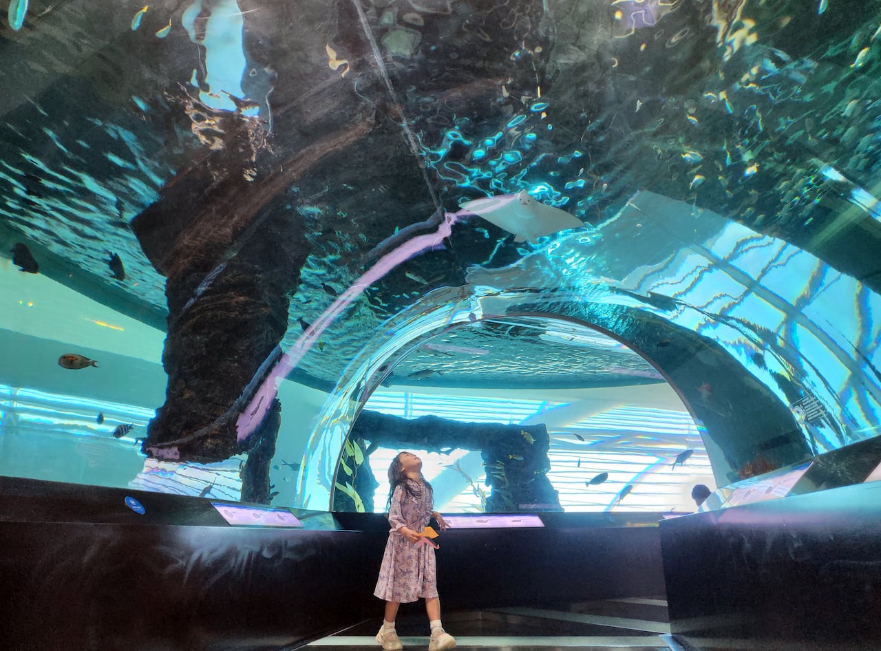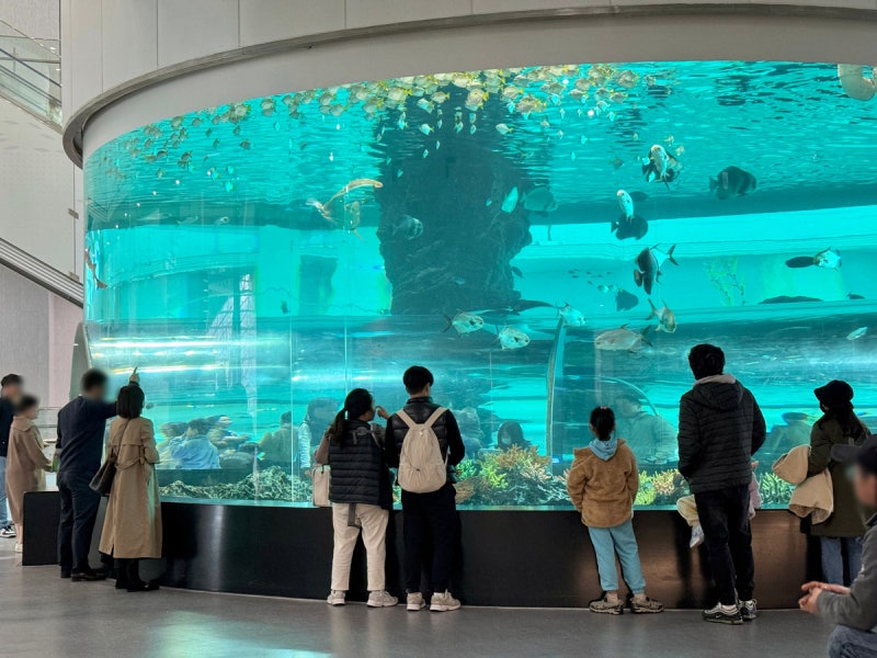 규모는 작지만 알찬 재미가 있는 수족관도 빼놓을 수 없죠! 다양한 물고기들이 헤엄치는 모습을 볼 수 있고, 특히 수중터널을 걸으면 마치 바다 속에 들어온 것 같은 기분을 느낄 수 있어요. 머리 위로 물고기들이 지나다니는 모습은 정말 신기하고 예쁘답니다.