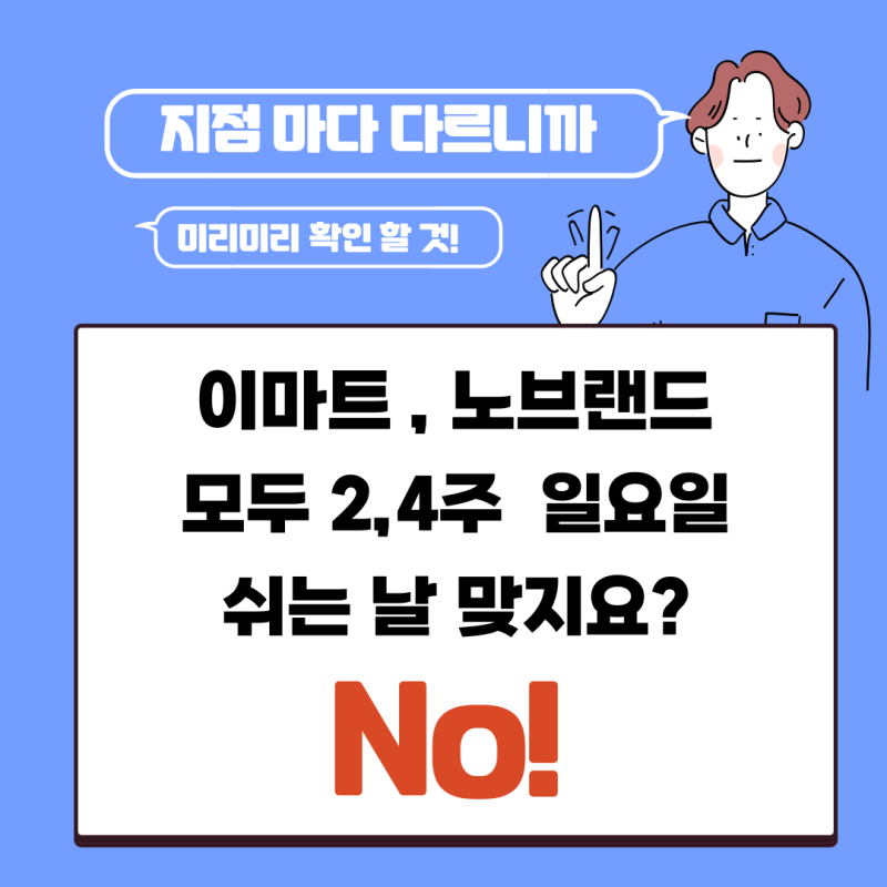 - 휴무일 사전 확인: 방문하려는 이마트 매장의 정확한 휴무일을 이마트 공식 홈페이지 또는 마트 휴무일 안내 사이트에서 미리 확인하세요.