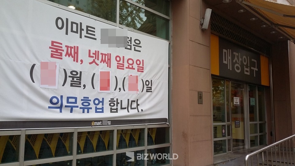 지역 상권 보호를 위해 지자체와 협의하여 휴무일이 일요일이 아닌 월요일, 수요일, 토요일 등으로 조정될 수도 있습니다. 또한 설날, 추석 당일, 1월 1일과 같은 명절에도 휴무가 적용됩니다.